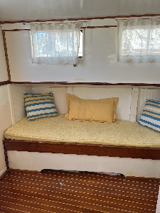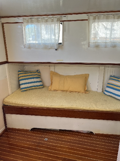 Dibujo: Manuel Campos Astillero: Parodi Hnos. Armador: Arturo Zucchelli Heladera eléctrica 220 V. Diciembre 2014 Aire acondicionado Frío calor. Diciembre 2014 Cocina eléctrica de anafe de una hornalla. Diciembre 2014 Ecosonda Raymarine en timonera Salón Ecosonda Raymarine en Timonera Fly Barómetro de Bronce de procedencia alemana Compás Náutico marca Kelvin –White modelo Constellation (Boston, USA, 1940) Compás náutico en Timonera Fly Reloj náutico de Bronce marca Schartz de 8 días de cuerda con campana de cuartos. VHF estacionario ajustado Octubre 2014 Antena televisión Five Oceans con enchufes a TV en timonera y camarote Sillón Giratorio en Fly Bimini en Fly Cargador de Baterías Inteligente. Octubre 2014 Separador de carga Octubre 2014 Farol buscahuellas original Bocina original Sirena original Carpa completa de 4 paños Octubre 2014 Bimini Top |